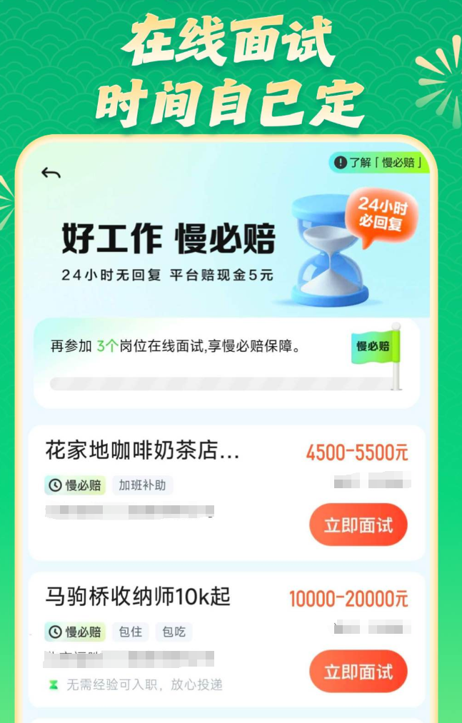 深耕招聘行业三十多年,积累了大量企业资源,覆盖城市范围广,岗位数量也相当可观。平台针对不同阶段的求职者做了分层设计,学生、普通白领和高端人才各有对应的功能模块。求职者可以直接和HR在线沟通,还支持视频面试,省去了来回跑的麻烦。职业测评和模拟面试功能对刚入职场的人来说有点用,能提前摸清自己的方向。灵活就业岗位也有整合,不只是全职招聘。