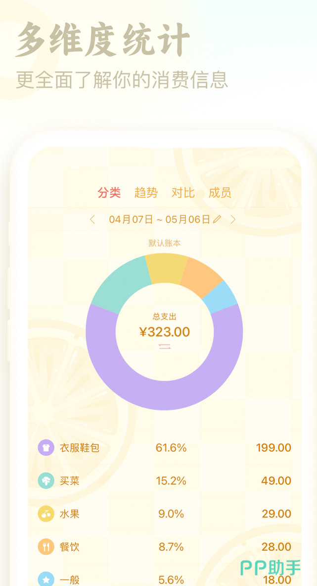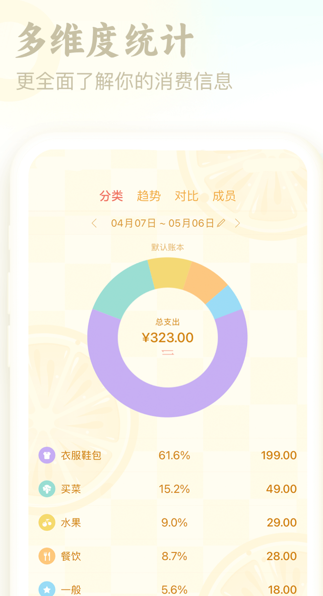 金额输入加分类选择,两步完成一笔记录,不需要摸索操作逻辑。账本可以按生活、生意、家庭等场景分开建立,多人协作编辑也支持,权限可以单独设置。预算模块按周、月、季度都能设,收支规律会被自动分析,超出预算前会收到提醒。收支对比图和费用构成图从不同角度呈现消费情况,环比和同期数据都能调出来看。财务数据只有账号本人可见,云端加密同步保证换设备后数据不丢。