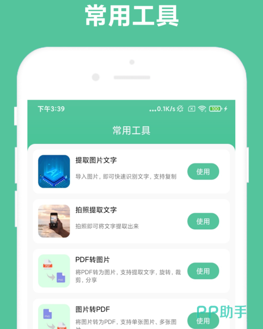 办公助手是一个比较万能的办公助手,操作适配性拉满,可以通过拍照的功能,将含有文字的图片提取出去,同时还拥有转化功能,主要是转换word文件,可以将其转换为pdf文件,这样玩家们在传输的时候就不会出现文字错乱的情况了。