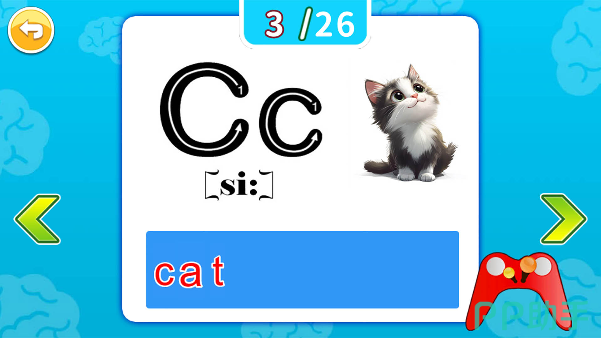 整体交互风格明快活泼,符合幼儿认知节奏。功能设计强调自主性,孩子可独立完成字母识别、单词跟读等操作。教学内容涵盖26个英文字母的标准认读,以及百余个基础高频词,全部由持证外教真人录制发音,口型清晰、语速适中,便于模仿与纠音。