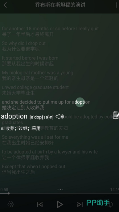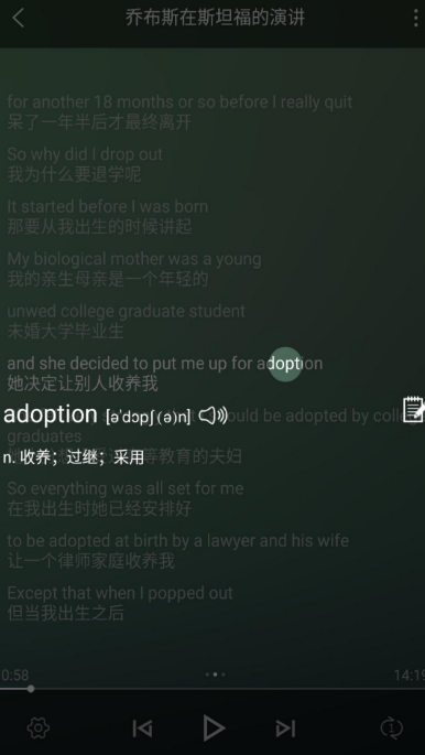 安装包只有50.9MB,不占空间,打开就能用。听力播放控制做得灵活,单句双击循环、多句长按循环都支持,中英文字幕可以滑动切换,点一下单词,就会有对应的翻译,大家有了不认识的词,也直接就查到了。素材大多都来自于日常,适合培养语感,生词加入生词本后,系统按记忆曲线安排复习,不用自己记什么时候该复习哪些词。