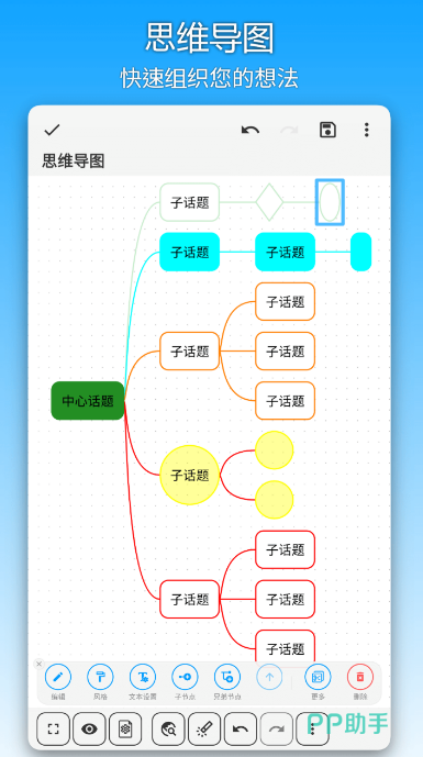 画布可以无限延伸,文字、图片、录音、表格都能自由拖放进去,会议内容怎么排都行,不受页面大小限制。手写功能支持四千多级压感,笔触还原度高,五十多种笔刷可以用来标注或者画图。思维导图内置了多种模板,线性的会议记录可以直接转成结构化的图谱,逻辑关系看得更清楚。待办清单可以设优先级和截止时间,配合文件夹分类,任务跟进不容易乱。语音转文字准确率达到98%,手绘图形还能转成矢量图,PDF和PPT导入进来可以直接批注。