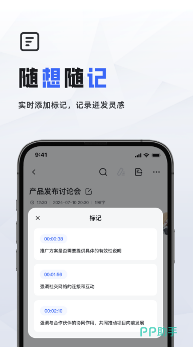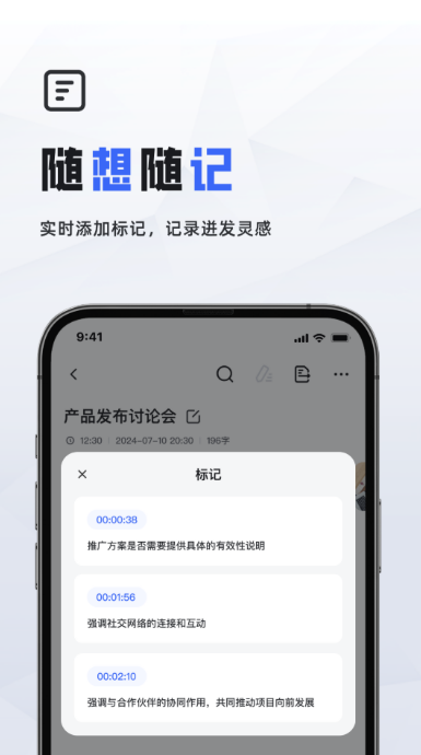 退出软件之后录音还在继续,这一点对开会的人来说很实用,不用一直盯着手机操作。在记的过程中,大家可以随时打标记,把关键决定或者待办事项单独标出来,会后找起来很方便。转写完的文字可以直接修改,还能用语音重新改写,导出成Word格式也很顺手。一个账号多台手机都能登录,数据存在云端,换设备也不怕丢界面没有多余的东西,上手不需要摸索太久,部门小会或者大型讲座都能用。