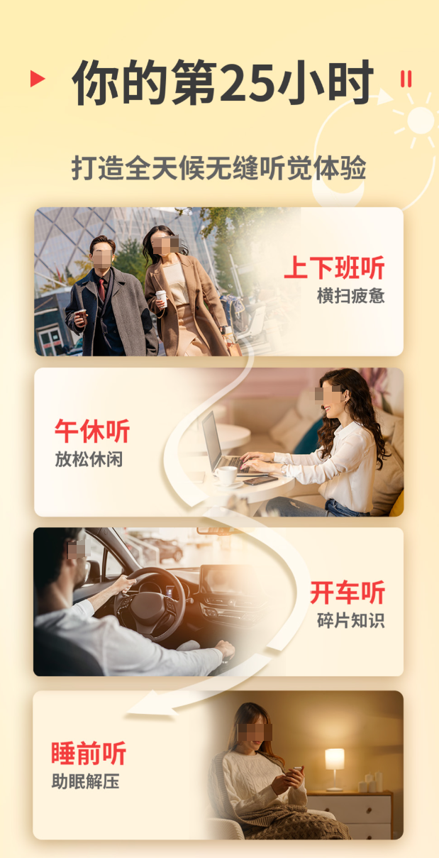 5万部有声作品,20万小时的内容量,光是这个数字就够翻很久了。全部正版授权,主播用专业设备录制,音质清晰,听起来不费劲。语音搜索省去了手动输入的麻烦,说出书名就能找到。倍速和音效调节可以按自己的习惯来,驾驶模式下线控操作也方便。Wi-Fi环境下批量下载,没网的时候照样能听。数据加密做了保障,换手机后收听进度和收藏都能同步过去,不用重新整理。
