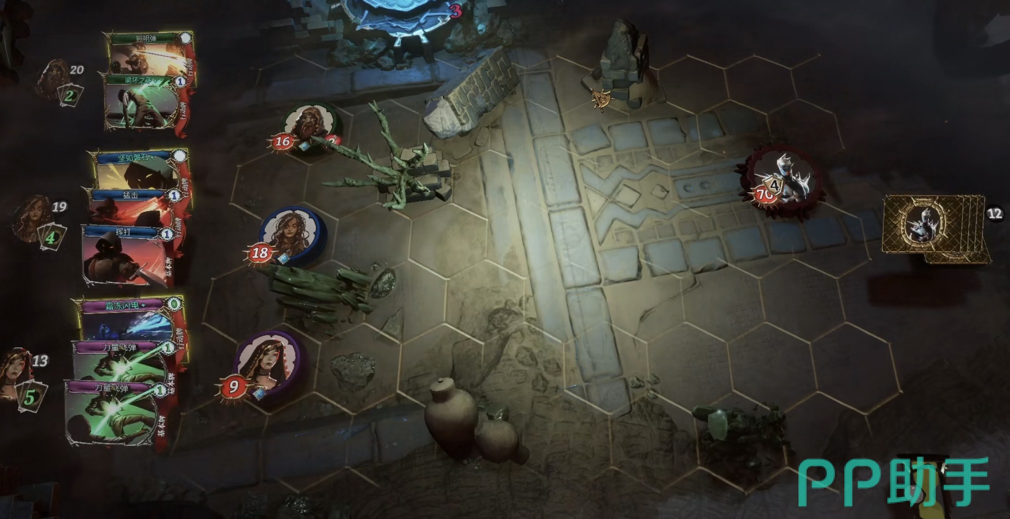猎手核心天赋为:每回合对同一目标首次攻击额外+2伤害。该特性使其在精准点杀关键敌人时具备显著优势。需特别注意远程攻击触发条件——仅当目标处于无遮挡视野、且自身未被敌方近战单位贴身时方可生效;一旦周围存在敌方单位,远程技能将自动锁定禁用状态。