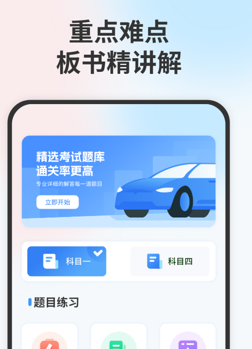 这个软件提供的服务是非常周到的,基本上每个科目的考试都有详细的教学,这样玩家们在使用该软件中能得到更多的知识,同时设置专门的考试场地,而且在考试中会有很多的提示,这些提示都是能帮助用户们提高驾驶的技巧。
