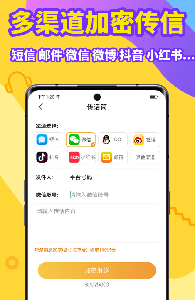 拨出去显示的是虚拟号码,真实手机号不会暴露给对方。通话基于点对点动态密钥机制,从链路层就把监听的可能性堵死了,接通率有专利技术保障,线路质量稳定。录音经过AES-256加密后存在本地,短信采用独立加密策略,相册和日记本各有专属密码空间,互不干扰。"传话筒"功能可以把不方便直接说的内容间接传递出去,适合一些需要迂回沟通的场景。