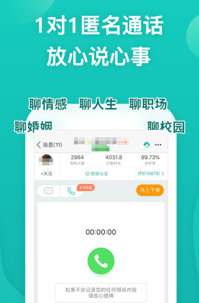 不需要注册账号,打开就能用,文字和通话都不留痕迹,通话还支持变声。加密技术参考了银行级别的标准,对话内容不会被第三方获取。平台上聚集了超过10万名倾听者,涵盖情感咨询、心理疏导、职业规划、婚姻家庭等方向,不只是普通的聊天陪伴。沟通方式支持文字、语音、图片和实时视频,想要面对面的感觉也能实现。