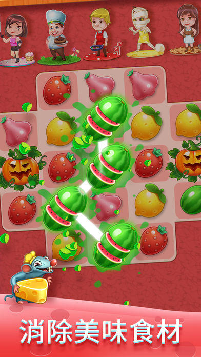 创新融合三重玩法:三消闯关驱动剧情推进,烹饪系统构建菜品逻辑链,换装模块拓展角色个性化表达。关卡中穿插老鼠偷油等趣味障碍事件,需通过消除策略清除干扰;同时需快速识别并调用锅具、刀具等厨房道具完成料理流程。厨师等级随任务进度动态提升,解锁新食谱与装饰内容。