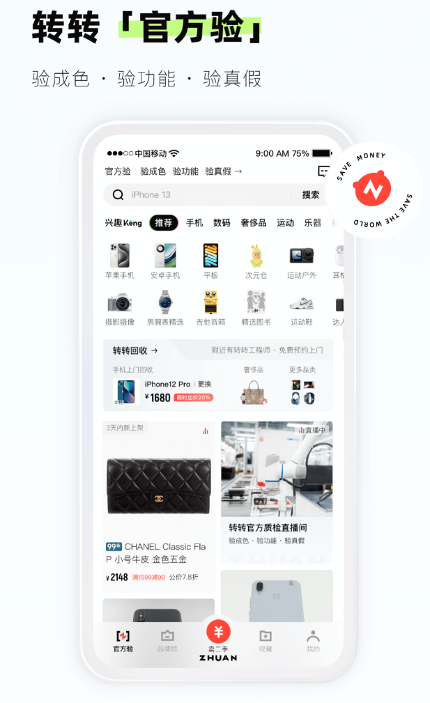 主打二手循环交易,兼顾流通效率与交易安全。“官方验”服务为数码产品提供标准化质检流程,涵盖20项外观检测与55项功能测试,并出具详细验机报告,显著降低买家顾虑。质检体系覆盖全国,设有3个中心仓及27个分站,由超2000人专业验机团队支撑。除手机等3C产品外,服装、家居等品类亦开放交易,拓宽闲置处置路径。