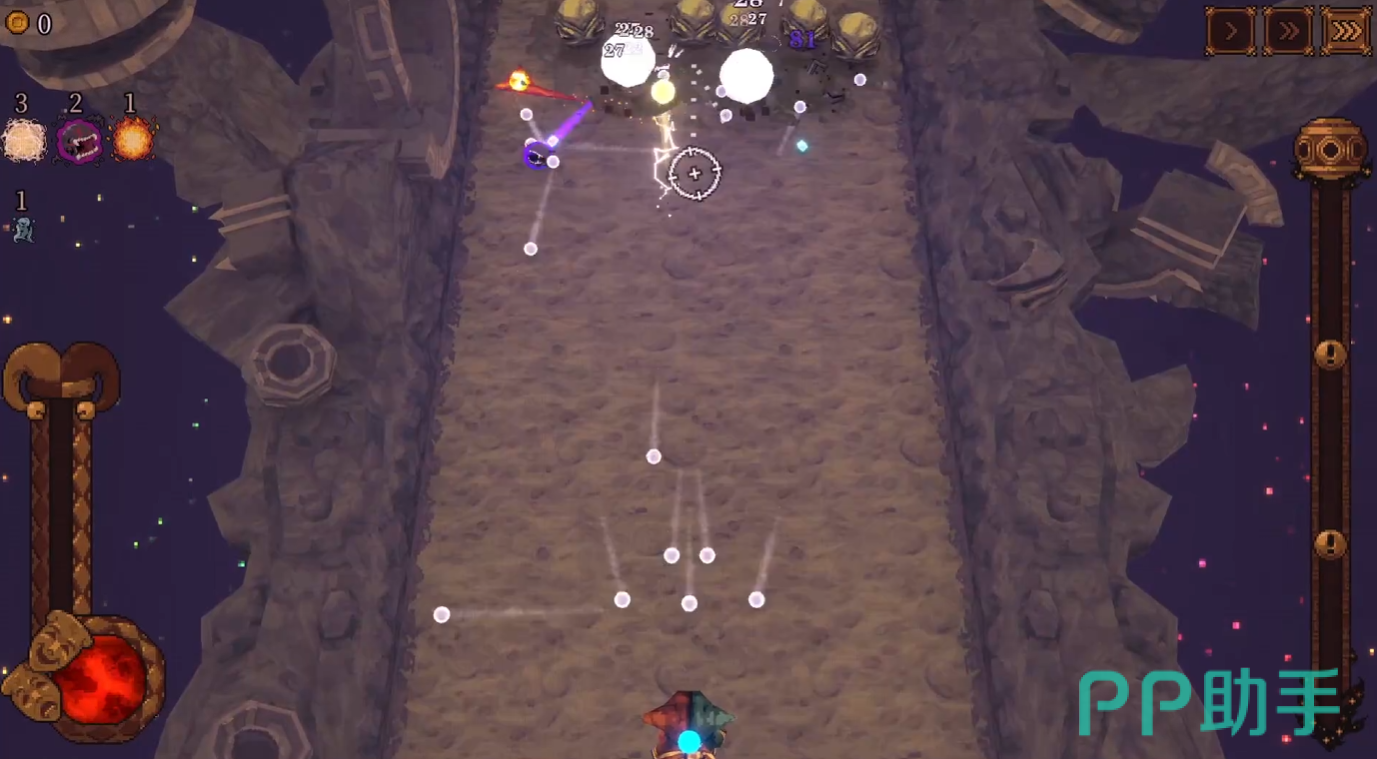 动态反射位移:角色生存与输出质量高度依赖位置管理。玩家应主动贴近墙体、转角或地形凸起处移动,将环境作为可控反射面,通过微调自身站位,使弹珠在敌群与障碍间构建稳定循环路径,延长有效打击时长。