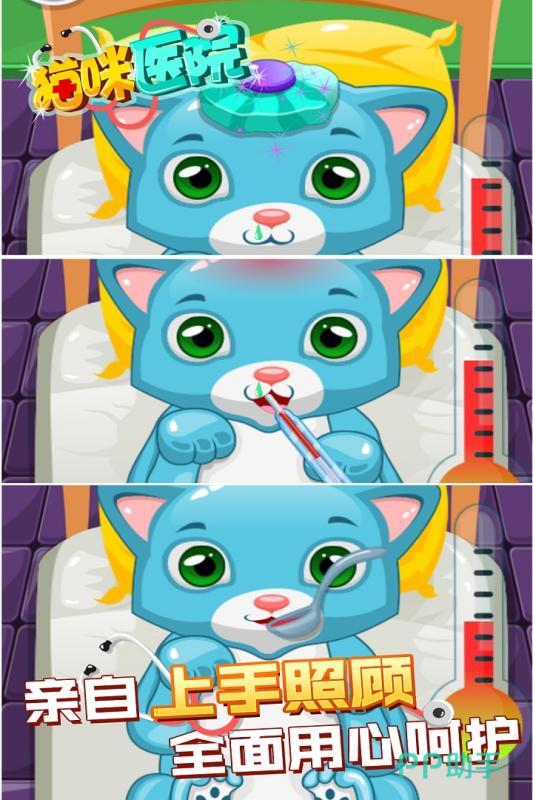 游戏采用拟人化猫科角色设定,主角为一只佩戴听诊器的橘猫医师,就诊者均为形态各异的猫咪病患。每只猫咪拥有独立病情档案(如毛球症、耳螨感染、爪垫擦伤),对应专属治疗路径。操作强调步骤逻辑:先观察行为异常→再使用工具检测→最后执行护理动作。成功救治后获得爪印徽章与语音致谢,正向反馈机制显著提升持续游玩意愿,对建立初步因果思维具有辅助作用。