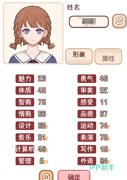 一开始我们首先需要设置一个自己的形象出来。游戏里面我们各方面数值都是很重要的,前期是可以进行随机分配,这个阶段我们不能着急,一定要随机出自己想要的点数出来才行。