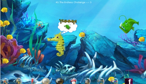 大家可以操控小鱼在海底灵活的穿梭,主动去寻找体型更小的鱼类吞食,补充自身所需要的能量,能量积累到一定的程度之后,小鱼就会进化,能够捕捉更大的猎物。游戏里提供了多种游玩的模式,每一种模式都有60多种独立的关卡,海底的场景非常多,海域里有很多不同的生物,大家可以放心的吃,有的带有毒素,一旦误食就会影响状态,游动的时候需要仔细的分辨,避开危险的目标。