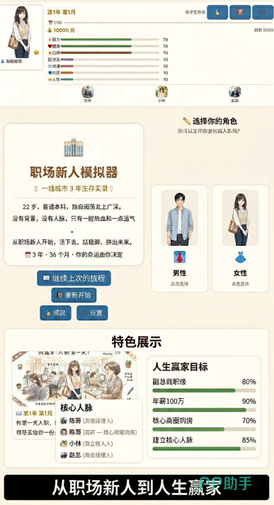 角色成长以季度为周期进行阶段性结算,即每满三个月触发一次综合评估与能力重置。在此机制下,玩家需在有限时间内合理分配精力、积累关键履历、建立人脉网络,并应对突发危机事件。数据显示,能在三年内完成从基层职员到高管晋升的玩家比例不足0.3%,凸显游戏难度设计的真实性与挑战性。