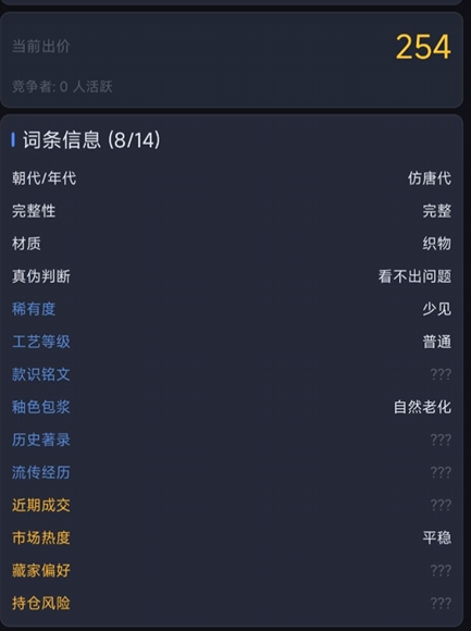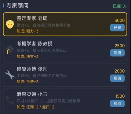 角色设定为业余收藏爱好者,非专业鉴定师,因此游戏更侧重商业逻辑与风险控制。当某件物品的竞拍价格明显超出其合理估值区间时,建议及时放弃。此外,系统内置专家咨询功能,玩家可在关键节点提交疑问,获得辅助参考意见,增强操作真实性。