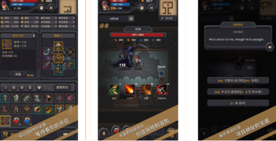 汇聚角色扮演以及英语学习等多种冒险玩法,为玩家构造出完整的奇幻冒险世界,化身成为冒险者,通过推动剧情任务解锁新的内容,可选择适合自己的装备并解锁更多技能,通过理解对应英文单词以及含义紧密绑定,轻松实现长期记忆。