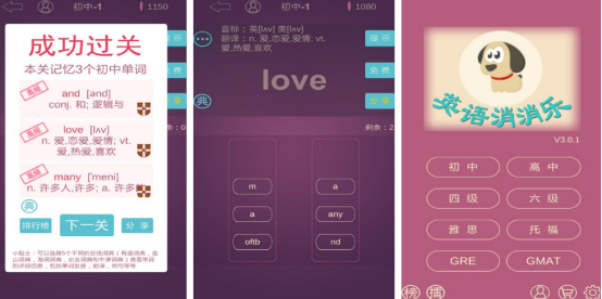 将层叠消除与英语单词相结合的游戏,可以认识不同物品的单词读法,以及具体的拼写模式。独特的三消玩法,增加趣味性以及挑战性,为了确保拥有更加独特的记忆效果,通常涵盖日常生活当中比较常见的高频词,每次完成关卡之后,关于单词的具体发音和相应的含义都会在这里展现。
