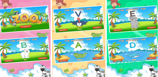 专为小朋友设计的英语启蒙游戏,提高儿童的听觉和视觉,主要的特色就是将互动与语言学习深度融合,激发幼儿对英语兴趣并建立语言能力,每个英文字母都配备可爱的动物形象,在认识的同时,也能学习动物的具体特征和相应的叫声。