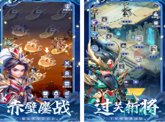 深度还原三国经典战役,如赤壁之战、过关斩将等关键节点均被纳入关卡体系。角色设定延续Q版风格,涵盖知名文臣武将及特色女性角色。玩家可通过自由组合卡牌参与多线程战斗,在乱世格局中实践战术推演。