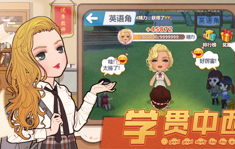 《全民学霸》这款游戏的画面非常的清新,画风也很舒服,搭配的音效也很特别,整体的氛围很惬意,里面的每一个角色和场景,看得出来都是用心设计过的。人物形象很鲜明,配音也很有活力,能够清楚的感受每一个角色的不同,它是经营模拟类的游戏,和其他同类型的游戏相比有自己的特色,没有那种千篇一律的感觉,玩起来很放松。