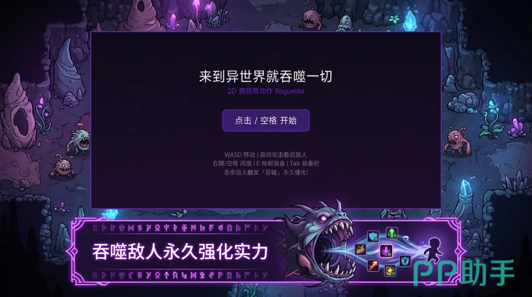 本作是一款融合俯视角动作、Roguelike机制与角色成长深度的异世界冒险手游。玩家将穿越至充满未知法则的幻想大陆,化身拥有“吞噬之力”的特殊勇者——通过击败敌人触发“吞噬”或“源质吸收”,直接获得力量、敏捷、生命上限等属性的永久提升,实现真正意义上的战力跃迁。