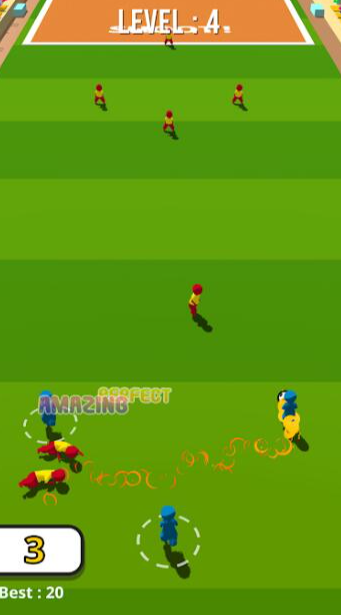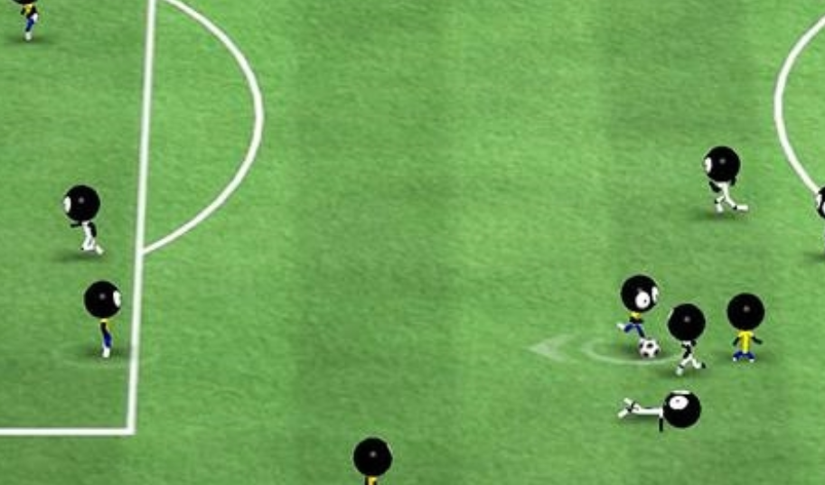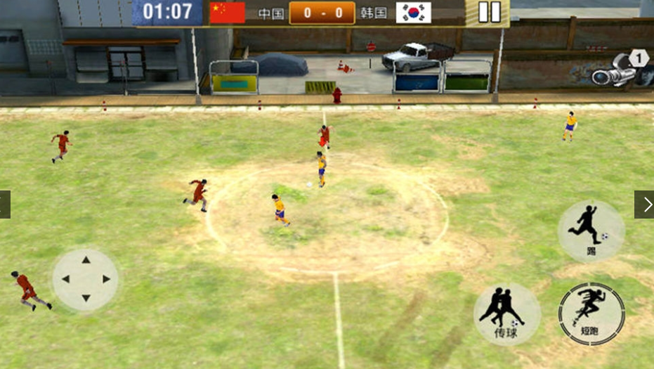 这款游戏的画面非常简单,没有多余的装饰。球场非常大,里面队员的样子都差不多,唯一区分两队的就是衣服的颜色,操控起来非常简单,先选好自己喜欢的球队颜色,就可以加入不同的对战模式。屏幕左下角和右下角都有控制按键,左边的按键用来控制队友的移动,右边的按键可以传球,也可以射门,操作起来很顺手,不用反复练习,上手就能玩明白。