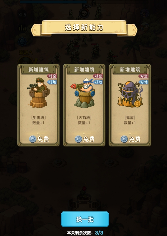 游戏内嵌Roguelike成长体系:所有已放置的防御塔均可在后续战斗中接受多次升级强化。每次强化需消耗银币,银币通过击败关卡内敌方单位获得。强化选项分为普通与金色两类,其中金色强化效果可触发质变级能力跃升,单次购买固定消耗200银币。建议玩家合理控制银币支出节奏,预留充足储备以应对关键节点的金色强化选择,避免因资源短缺错失核心战力提升机会。