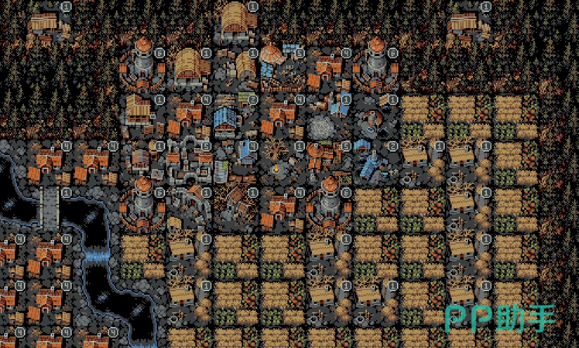 地形要素具有明确的功能指向性。河流不仅塑造空间结构,更能强化邻接地块效果;理想布局中,应将其置于地图最外环,并设计为连续S形走向,以最大化增益覆盖范围。但须规避两类风险:一是河流不得与主循环路径交叉或紧邻,否则易转化为芦苇绿洲,削弱路径通行性;二是不可延伸至沙漠区域,以防地形冲突导致功能失效。草地地块兼具回血与环境进化双重特性——布置于建筑周边时,可自然生长为茂密草丛,显著提升持续恢复效率,是保障续航能力的关键生态单元。