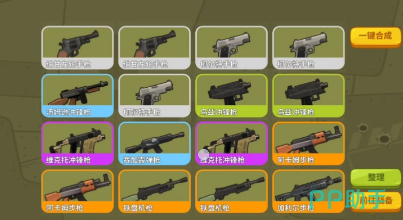 游戏内置创新性的“枪械合成”成长体系:每次完成挑战均可获得随机武器;当持有两把相同型号枪械时,即可触发合成机制。合成后武器基础伤害提升,并随机升阶为更高品质类型。需注意的是,合成结果不锁定原枪种——若玩家偏好特定枪械长期使用,建议累计获取三把及以上后再执行合成,预留一把作为主力常备装备,确保核心作战风格不受影响。