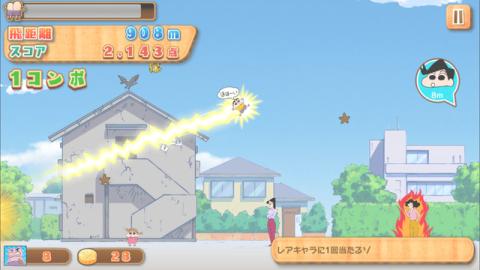 由双叶社与浅草游戏联合出品的动作类休闲手游。玩法以“发射—碰撞—连锁飞行”为核心逻辑:玩家借助小葵的“千年杀”能力将小新弹射升空,借力撞击其他春日部居民实现连续腾跃,目标是达成最远飞行距离。飞行过程中长按屏幕可启动“屁眼喷射器”微调姿态,同时需规避追击的美伢,一旦被抓住即判定失败。整体节奏明快,荒诞搞笑气质与原作一脉相承。