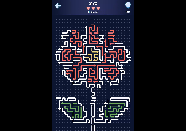 游戏采用单指点击触发机制:玩家轻点任意箭头图标,该箭头即沿自身指向方向匀速滑动,直至触碰障碍物或完全移出屏幕边界——仅当完整滑出画面时,才视为成功消除。关卡结构由基础几何图形构成,涵盖直线路径、闭合环形、多层交叉布阵等类型,难度呈阶梯式递进,无突兀跳跃感。
