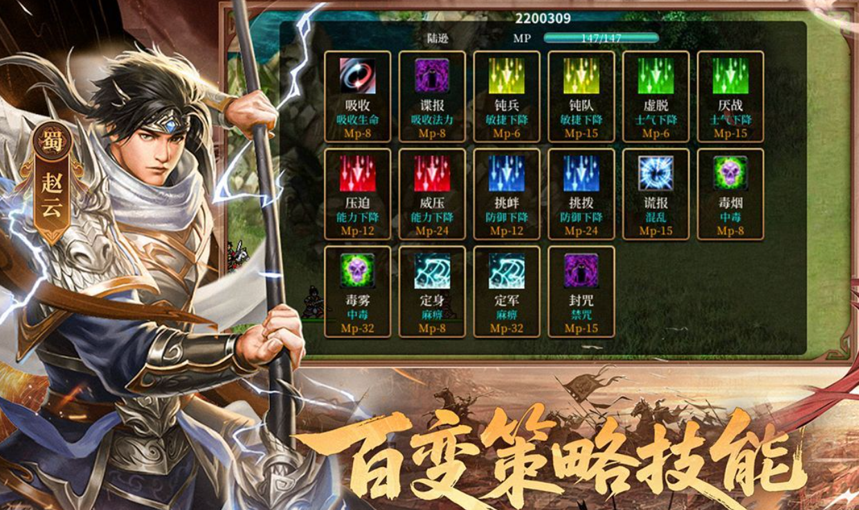 本作也是拥有策略性内容的三国时代背景战争游戏,战争理念深入人心也有着超前的战斗任务可以完成,酣畅好玩的回合制战斗模拟玩法可玩性不错,欢乐的游戏气氛对比其他的策略游戏耐玩性更强,三国时代的角色人设以及事件都塑造的栩栩如生,激情四射的战斗冒险性质让三国迷久玩不腻。