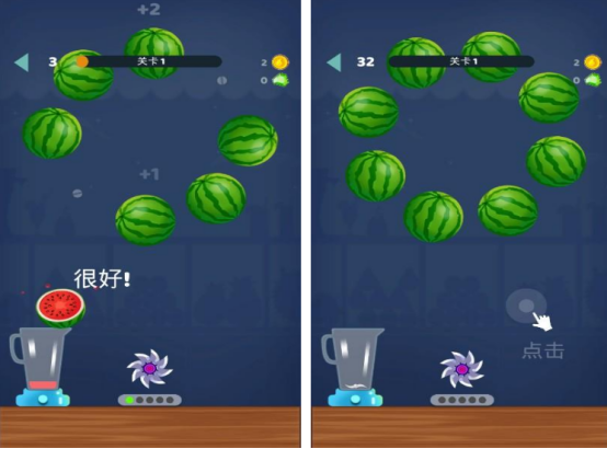 有简约的风格,采用卡通的画面所打造的休闲榨汁机手游,既能够帮助大家享受简单的操作方法也是极容易上手的,通过掌握游戏当中的规则,点击发射飞镖,如果能够顺利的击中漂浮水果的情况下,就能够获得分数,并且顺利的通过关卡。在完成飞镖设计的过程中,要掌握一定的技巧,这样才能够帮助玩家顺利的榨成果汁。