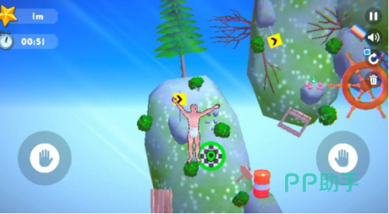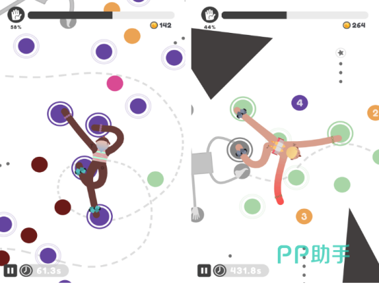 游戏有着简约的设计,玩家将会化身为游戏当中的攀爬者,主角的设计给人的感觉特别的单薄,但是却能够通过不断攀爬的方式拥有着更高的高度,来解锁新的时装,完成相应的挑战。有滑稽,甚至是简单迷人的视觉效果,通过充满着搞笑的游戏机制,帮助玩家享受欢乐,在每次攀爬的时候要根据不同颜色的圆点控制角色。