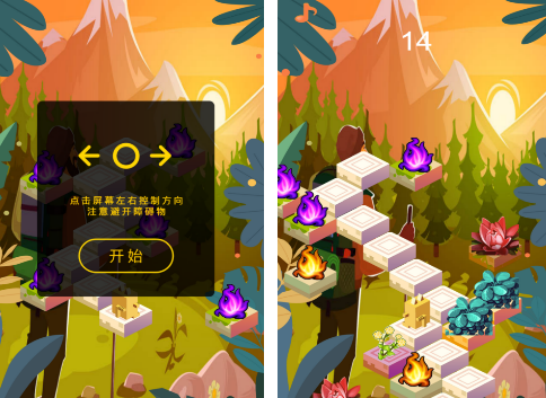 这款以攀登山峰为主要特色的小游戏,所有玩家利用点击屏幕左右方向,来控制主角的方向,因为在攀爬时也会遇到一些障碍,只有正确控制角色方向的情况下,才能够避开。有精美的画面风格,以及攀爬时的不同场景,通过掌握的各种技能,利用操作方式,能让玩家在玩的过程当中攀爬的更高,这样得到的分数也会更高。