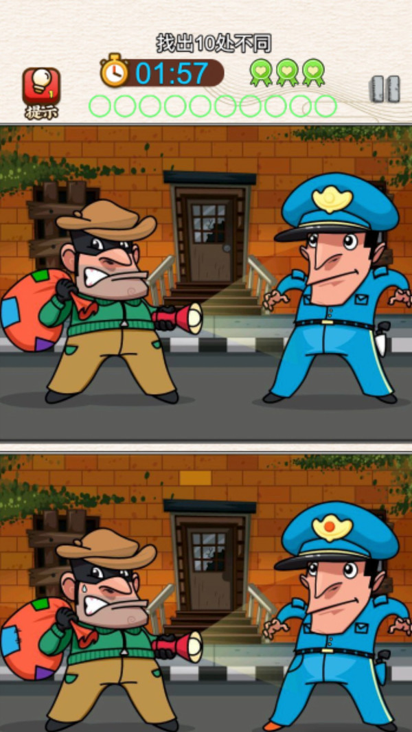 这是一款高度考验观察能力与细节敏感度的双图对比类游戏。玩家需在两幅构图几乎完全一致的画面中,快速识别出若干处细微差异。关卡数量丰富,难度梯度合理,从入门级到高阶挑战层层递进。画面色彩明快、节奏轻快,配合清脆音效,营造出沉浸式寻错体验。每一次成功定位差异,都带来即时正向反馈,有效提升持续专注力与视觉分辨力。