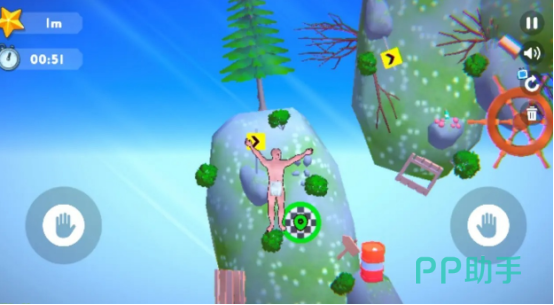 极简主义美术风格下,主角以纤细剪影形象登场,强化了攀爬过程中的脆弱感与反差萌。玩家通过点击不同颜色圆点触发对应动作指令,实现抓握、蹬踏、摆荡等连贯操作。随着高度提升逐步解锁趣味时装,如橡胶鸭泳镜、弹簧高跷等搞怪配件,用荒诞机制消解传统攀岩的严肃感,营造轻松解压的游戏氛围。
