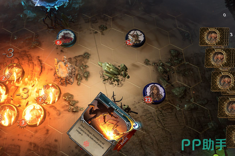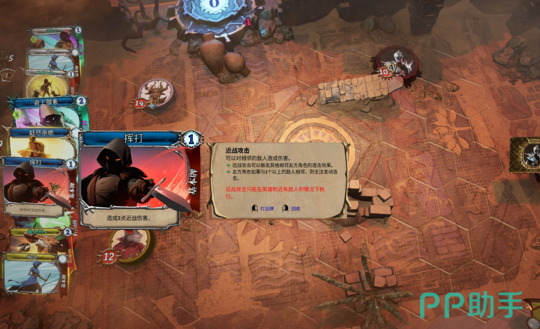 核心玩法框架完全一致:每回合为3名英雄共抽12张卡牌;所有行动均消耗“意志力”,回收手牌可恢复该资源;战斗在六边形棋盘展开,地形遮挡、视野判定与相邻格位严格影响技能释放——近战单位仅能攻击邻接格目标,远程单位则需确保攻击路径无阻挡。职业系统驱动构筑方向:例如刺客职业每次攻击额外+1伤害,天然适配快攻爆发流派;其余职业亦依其被动特性引导卡组构建策略,开局可自由选定。