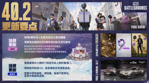 绝地求生迎来九周年里程碑,自2017年上线以来持续保持高热度,全球玩家社群活跃度稳居战术竞技品类前列。值此重要节点,PUBG官方于2026年3月11日8:00至16:30正式推送40.2版本大型更新,涵盖地图机制、庆典玩法、地图优化、UGC工具、模式调整、工坊扩充、通行证体系及跨界联动等八大模块,内容体量为近年之最。