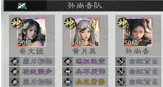 在《三国天下归心》当前版本中,以孙尚香为核心、黄月英与蔡文姬协同作战的“三姐妹追击流”阵容,凭借高爆发、强联动与低操作门槛,稳居T0梯队。该体系兼顾PVE推图效率与PVP实战压制力,新手玩家经短时间熟悉即可稳定打出理想输出效果。