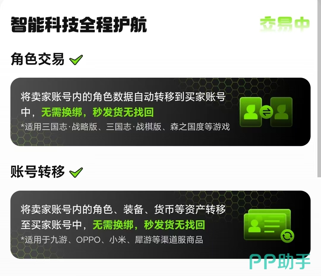 如交易过程中遇到任何疑问,用户均可随时联系平台在线客服,获得及时响应与专业解答。作为阿里巴巴灵犀互娱旗下核心产品之一,交易猫与九游、biubiu加速器共同构成该生态的重要组成部分。平台承诺业内独有的“全场永久包赔”服务——交易完成后,若发生账号被恶意找回或因非用户责任导致封禁等情况,将按规则提供相应保障,切实免除买家后顾之忧。