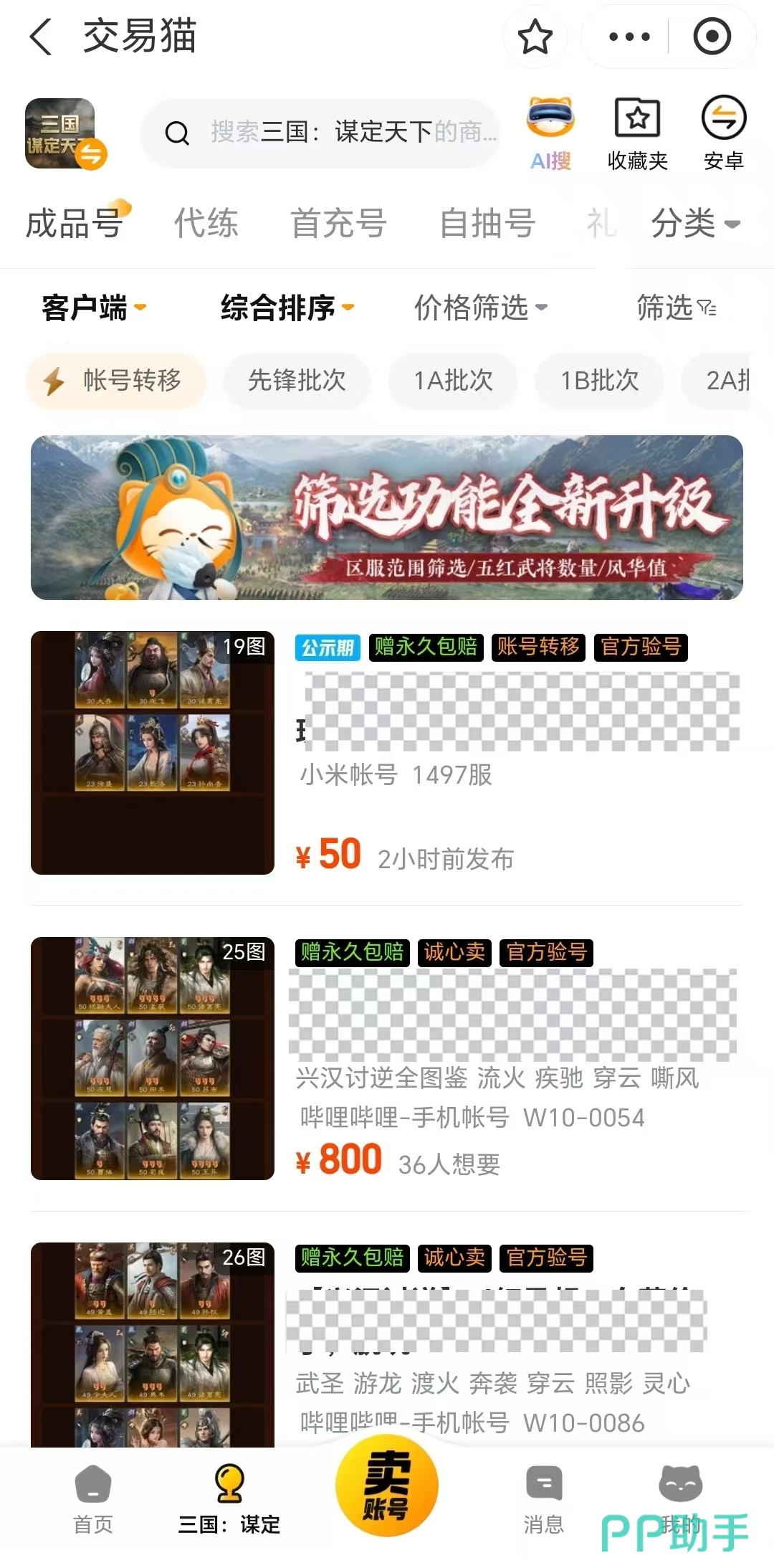 安卓用户可通过上方链接安装官方应用;iOS用户请访问交易猫官网完成下载与注册。登录后输入目标游戏名称,即可进入专属交易专区。依托庞大的活跃用户基数,账号成交效率显著提升。平台提供多种类型账号:成品号配备全套顶级装备,开服即战;金币号、精粹号资源充足,满足日常养成需求;另有王者号、贵族号等高价值账号,助玩家迅速跻身服务器顶尖行列。