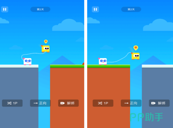 这是一款主打物理协同机制的动作冒险游戏,两位玩家需分别操控角色,通过绳索实时连接实现同步移动。跳跃、攀爬、解谜等核心玩法均依赖双方节奏协调与即时响应,角色造型萌趣、关卡设计富有童心,既考验默契又避免单方面主导,非常适合6岁以上儿童与家长组队通关。