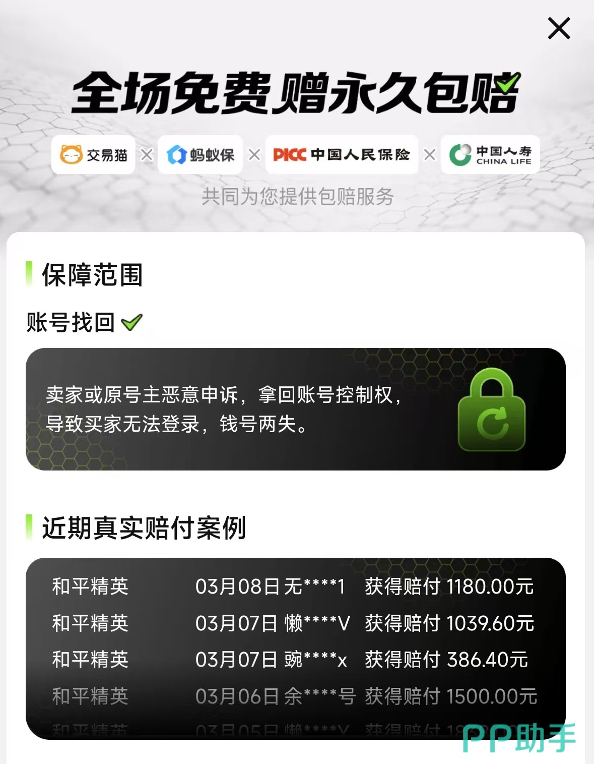 针对用户最关注的交易安全性,交易猫构建了覆盖全流程的风控体系。买家最担忧的虚假描述、交付后被恶意找回等问题,以及卖家担心的收款延迟、资金无法到账等风险,在该平台均有对应解决方案。平台由阿里巴巴灵犀互娱孵化运营,与九游、biubiu加速器同属其旗下重点产品矩阵,具备成熟的技术支撑与合规运营资质。尤为关键的是,交易猫是当前行业中唯一实现“全场永久包赔”承诺的平台——若发生账号被原主找回、异常冻结或盗号等情形,将依据协议约定比例启动赔付流程,尤其适用于大额账号交易场景。
