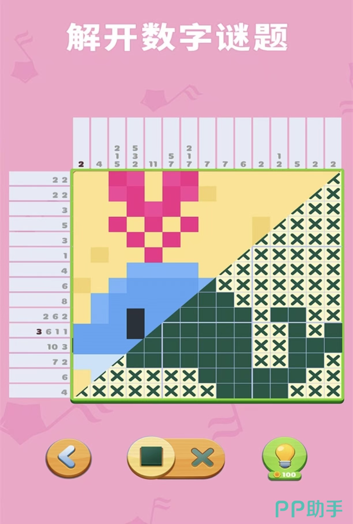 这是一款融合非ogram(填方块)机制的像素艺术解谜游戏。玩家根据每行每列旁标注的数字提示,推断出对应位置是否填充方块,逐步还原隐藏的8-bit风格图像。全作含超千关卡,分设森林、机械、神话等十余个主题场景,数字线索与视觉呈现紧密结合,兼顾逻辑训练与审美满足。