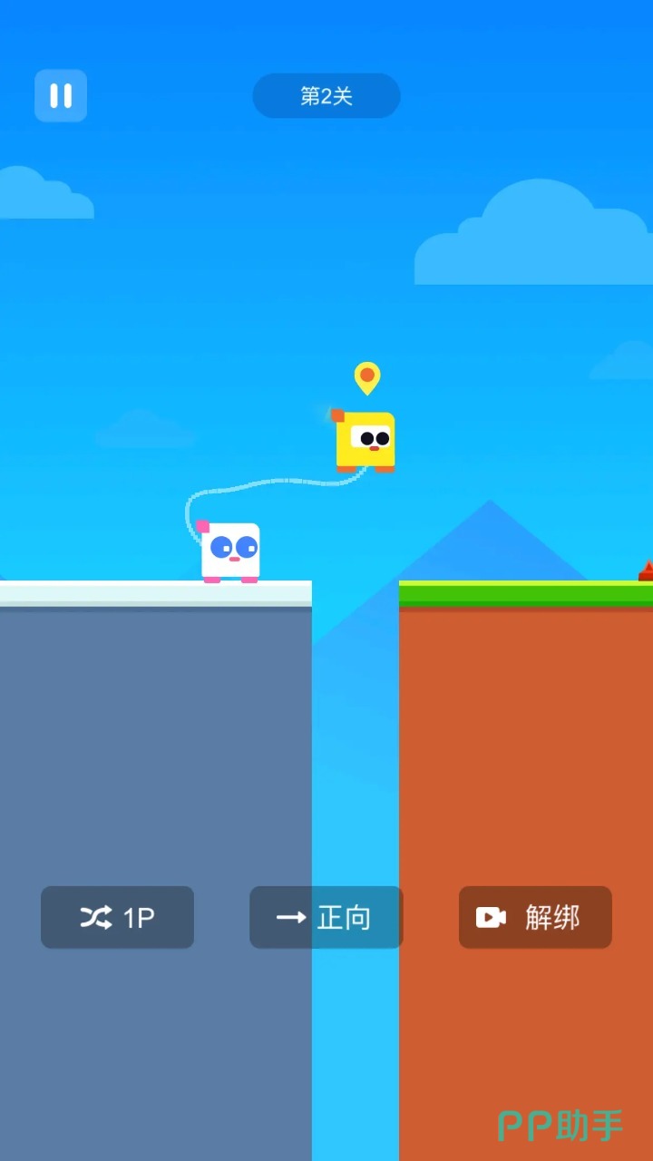 游戏以“绳索绑定”为核心交互设定,两名方块人角色命运相连,所有移动、跳跃、悬停操作必须严格同步。关卡地形经精密数学建模,结合蝙蝠群袭、尖刺陷阱等动态障碍与静态机关,形成节奏紧凑、容错率低的合作挑战体系。
