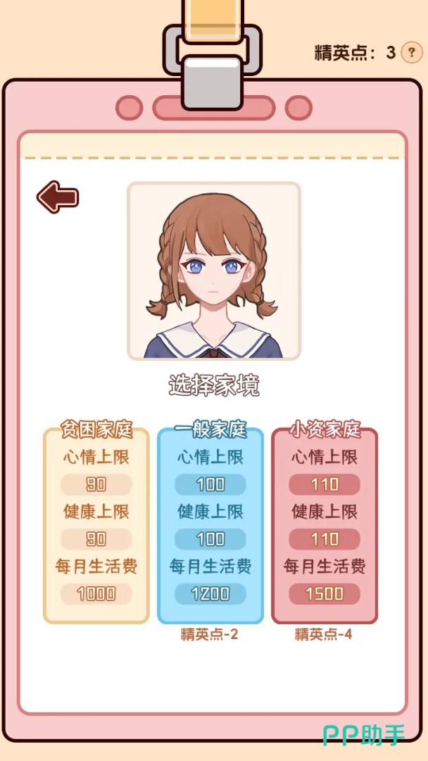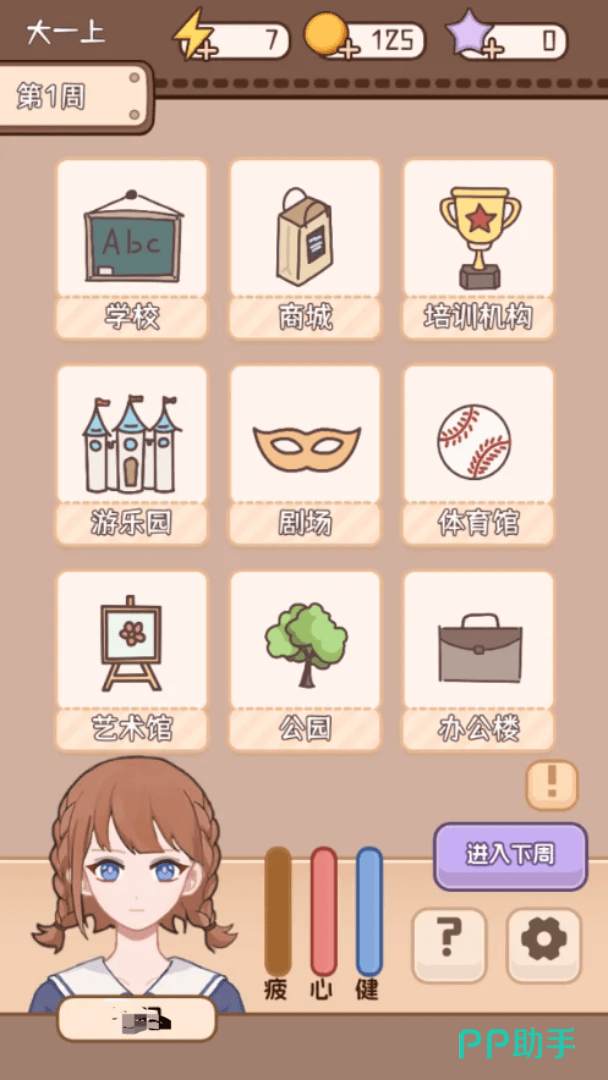 游戏支持高度个性化的角色创建:玩家可通过“捏脸”系统自定义外观细节,并在初始阶段自由分配属性点数。进入大学后,可依据个人规划选修专业课、通识课或实践类课程,持续强化对应能力维度;同时,“人生观”系统会随关键事件触发动态演化,使角色价值观具备成长性与独特性。