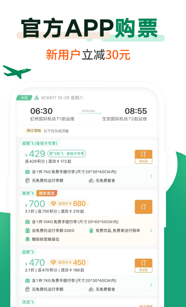 99元系列特价票在不少旅客里有固定受众,官方渠道买票还能叠加积分,消费1元返1积分,积分直接抵票款,比第三方平台划算。实名认证后购票最高立减30元,79元省钱卡一次往返基本就回本了。在线值机和选座不用去机场排队,航班延误或者起飞时间有变动,推送通知会提前告知。行李额度、机上餐食、旅游保险都能单独购买,按需添加,不用捆绑。