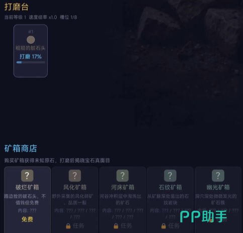 初始即配备基础打磨台,支持对采集所得原石进行物理处理。不同种类矿石经打磨后存在差异化转化概率,部分可生成具备市场价值的宝石成品。该机制构成游戏经济循环的核心支点:自用可提升角色鉴定等级与工艺熟练度,出售则用于兑换高级工具、拓展工坊空间或参与拍卖行竞标。